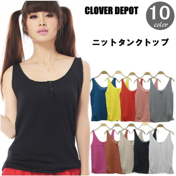 タンクトップ レディース おしゃれ インナー ノースリーブ チラ見せ トップス キャミソール シンプル かわいい おしゃれ ニット 飾りボタン 丸襟 白 黒 B001 Clover Depot 通販 Yahoo ショッピング