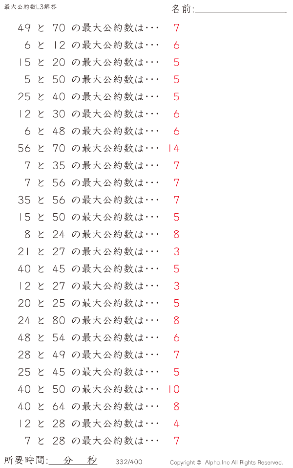最小公倍数 最大公約数 小学5年生 計算無料プリント 小学生算数問題